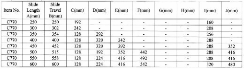 Material : SteelType : C771 W/O RibC771-R W/RibFunction : One-way travel / With stainless steel clipSize : Groove Width : 27mmLength Available : 300 / 350 / 400 / 450 / 500mmLoad Capacity : 18kgsFinish : Zinc Plated